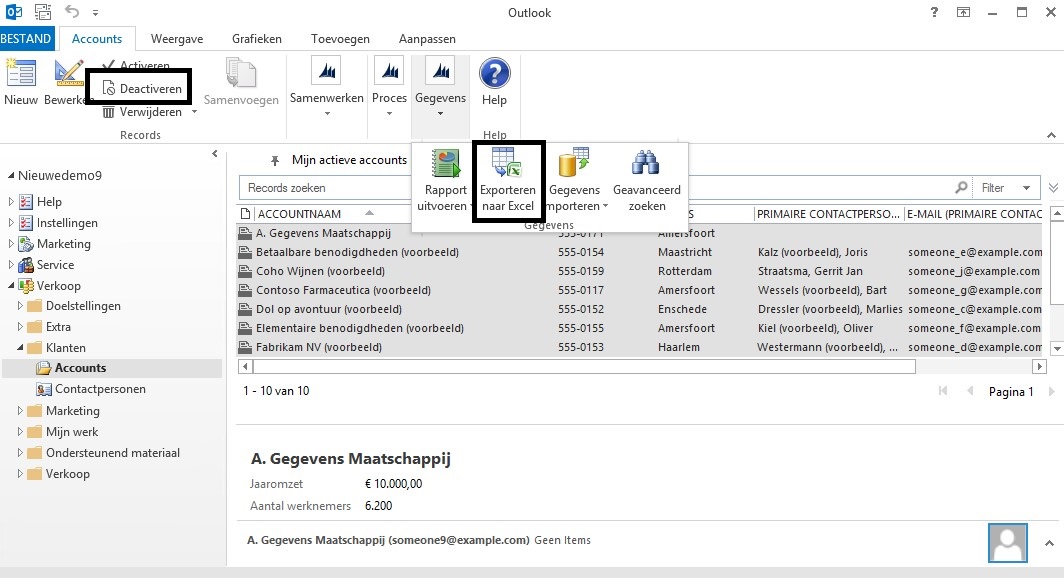 Bewerken, toewijzen, deactiveren en exporteren van records in een weergave.